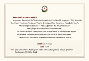 AZERBAYCAN BÜYÜKELÇİLİĞİNİN VE KÜLTÜR MERKEZİNİN BAŞARILI ÇALIŞMALARI DEVAM EDİYOR. KÜLTÜREL BİRİKİM VE HAZİNELER GÜNYÜZÜNE ÇIKIYOR, TÜRK KÜLTÜRÜ AYDINLANIYOR. YAPILAN ÇALIŞMAYA KONUŞMACI OLARAK DAVETLİYDİK. EMEĞİ GEÇENLERE TEŞEKKÜR EDİYORUZ.